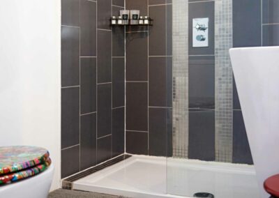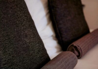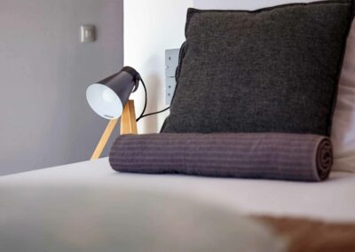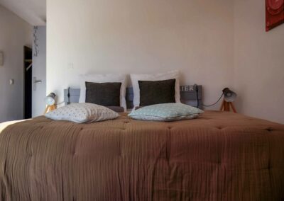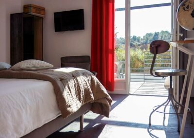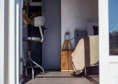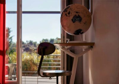 Avec mon fauteuil Pantone et ma chaise à bascule Charles Eames, d’une surface de 21 m², je possède un lit King size (180×200) ou 2 lits simples (90×200). Sols blancs en résine, lignes asymétriques, originalité et dynamique des formes.