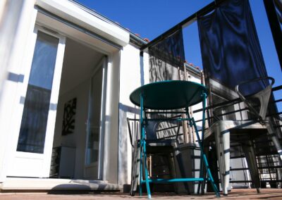 21 m², zen et très tendance, je cultive une ambiance toute en douceur et harmonieuse. Vous apprécierez le lavabo en forme de 7, sa très grande douche italienne. Un peu en retrait, ma terrasse privative est ornée de bambous, vous protège du vent en toute intimité.